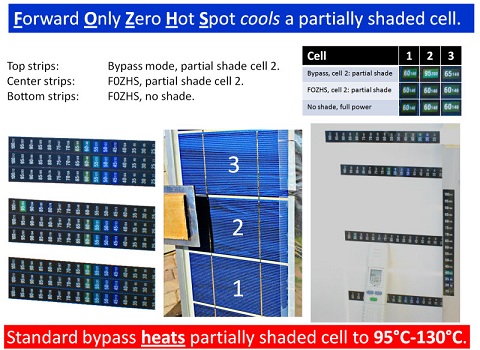 The top sensor indicates Bypass data; the middle indicates FOZHS data in partial shade and the bottom indicates the no shade temperature in full production.